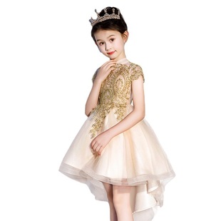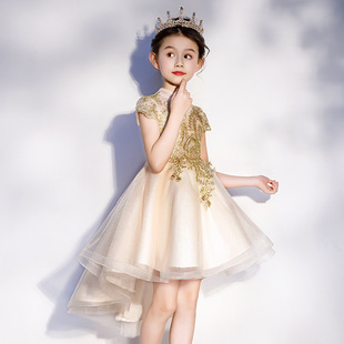 花童大码 晚礼服女大童公主裙小女孩生日主持人走秀钢琴演出服婚纱