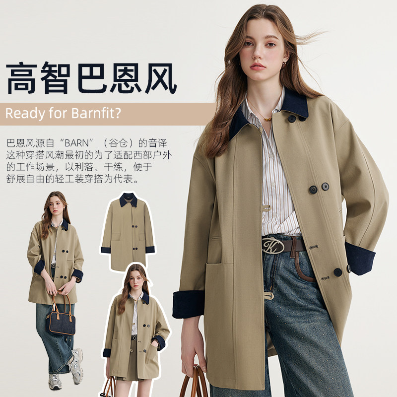 KBNE巴恩风卡其色风衣女小个子2026春季 气质英伦宽松中长外套 新款