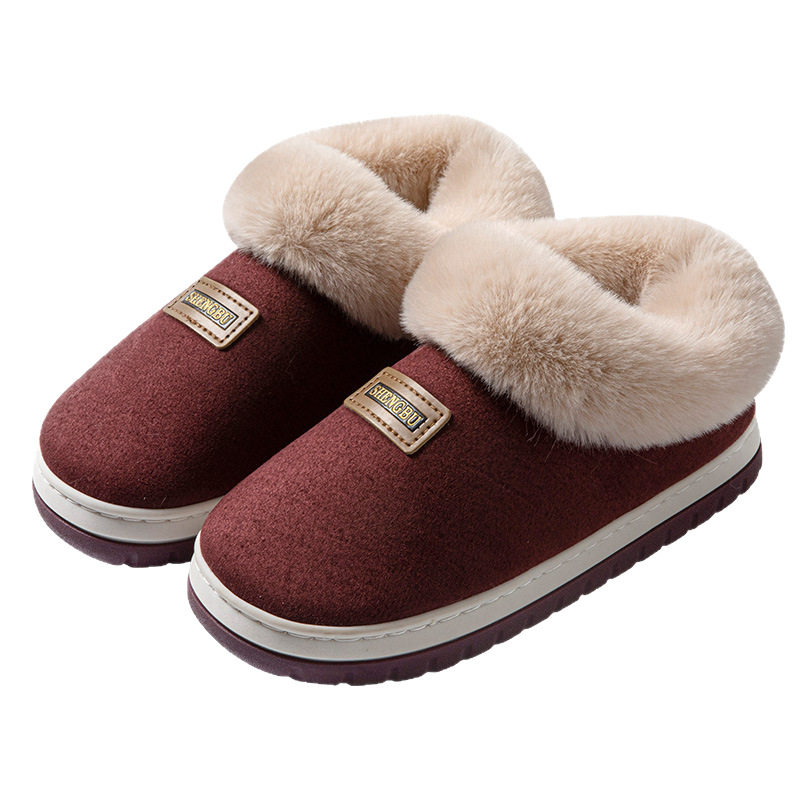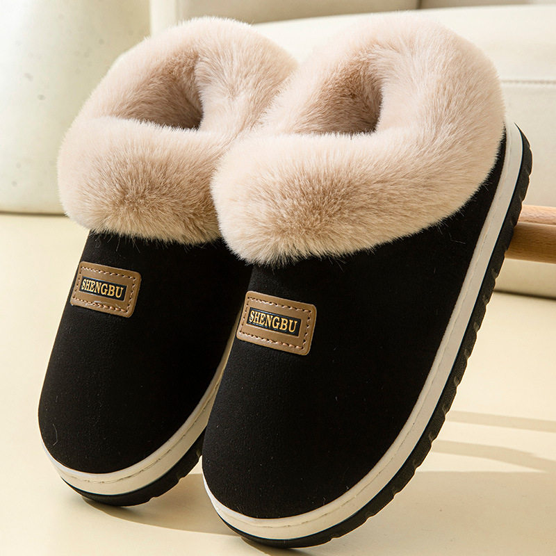 情侣家居室内防滑保暖毛毛绒棉鞋 厚底棉拖鞋 新款 包跟秋冬季 女 男士