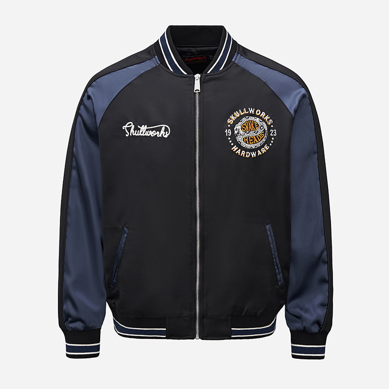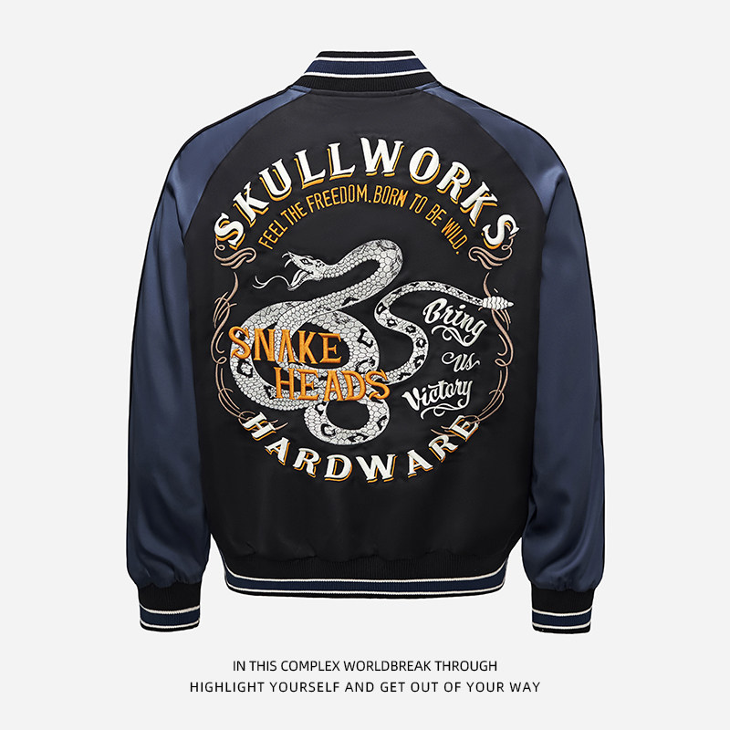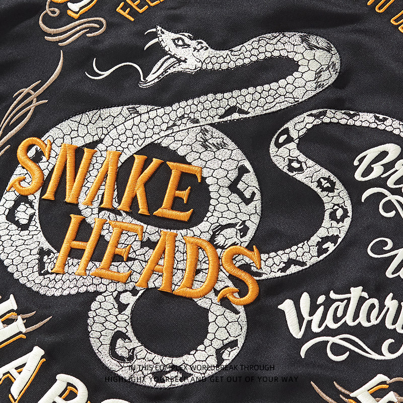 棒球服上衣外套夹克个性 战线热血高校蛇形刺绣男士 潮 武装 千往新款