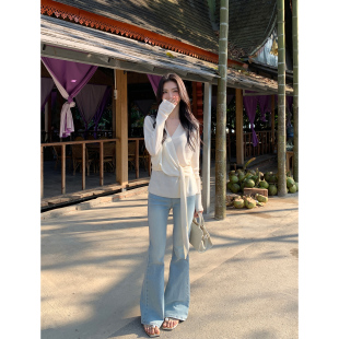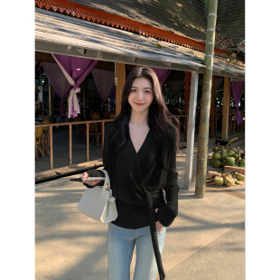 女小众设计气质收腰绑带上衣 氛围感v领针织衫 MULVAN 清冷感姐姐