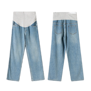 不勒肚子休闲阔腿裤 孕妇裤 无托腹丹宁蓝牛仔裤 外穿2025新款 春秋款