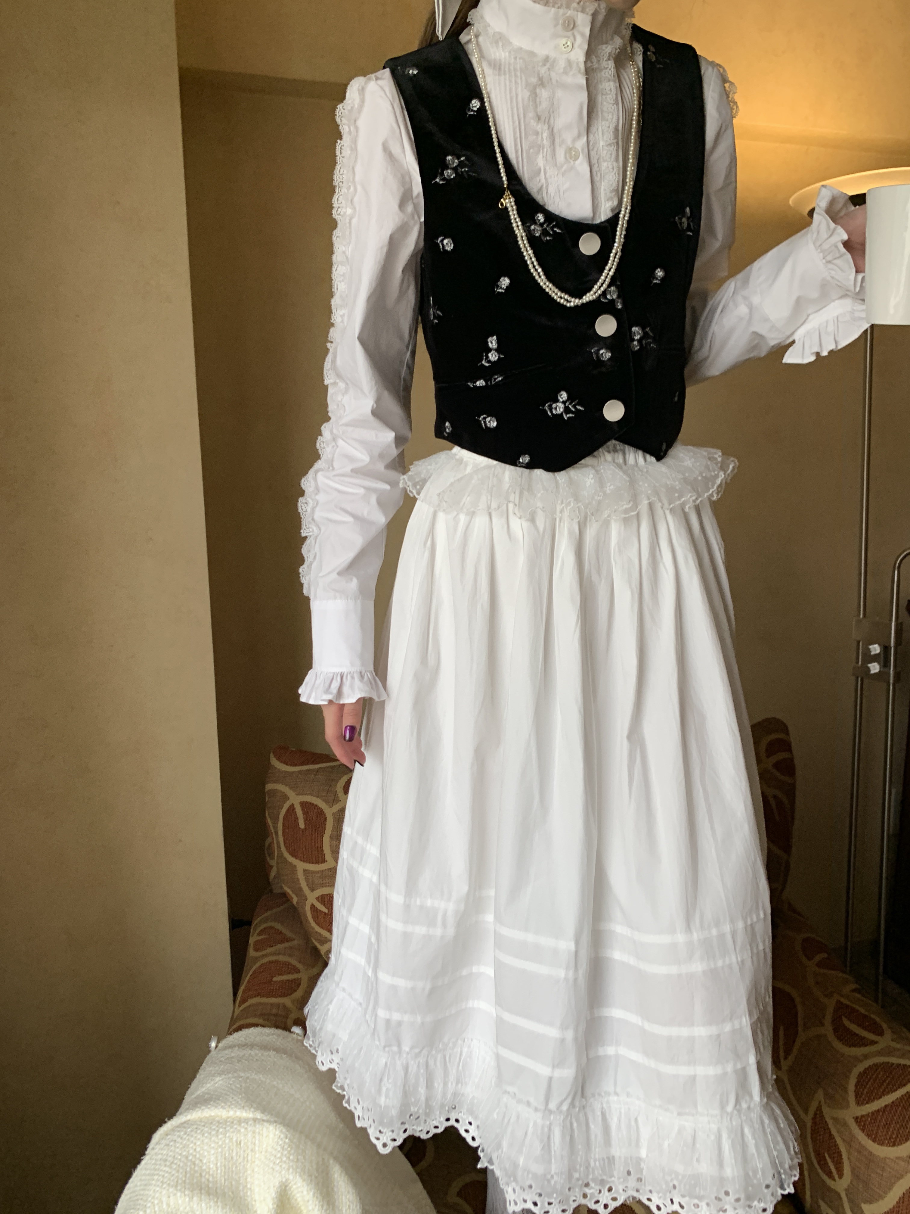长裤 pinksavior 配色显瘦背带裙衬衫 黑白经典 休闲 暗夜马戏