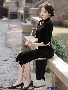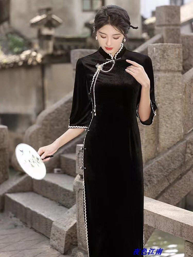 旗袍 显瘦秋冬款 淡极生艳 温柔珠光厚款 原创自制秋冬款
