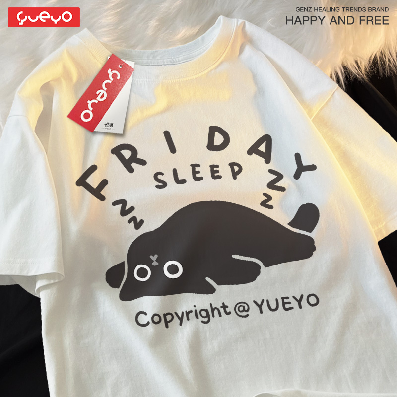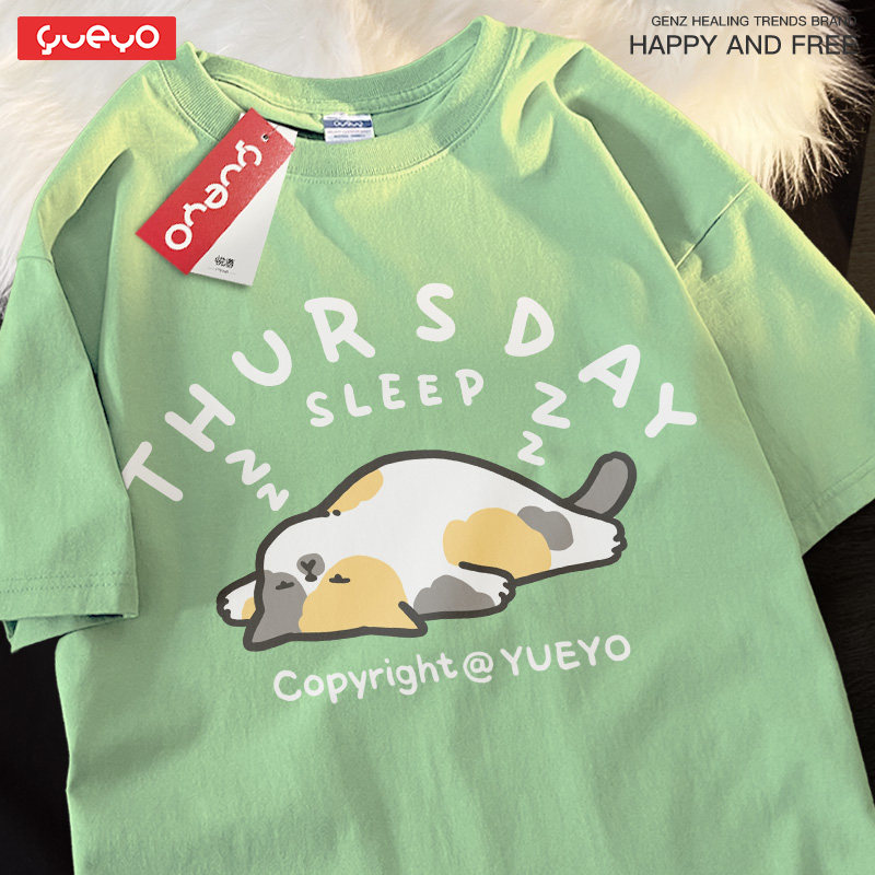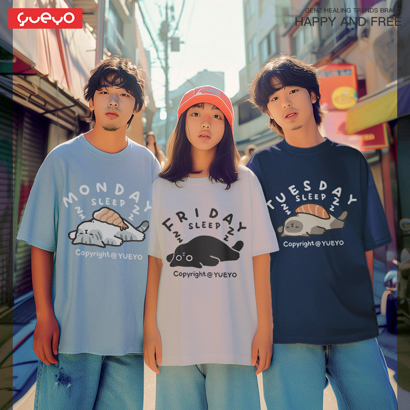 男日系 短袖 悦游Monday sleep打工人星期几t恤趣味中性风纯棉夏季