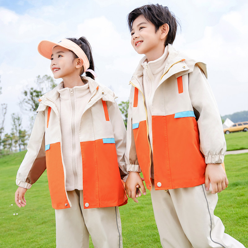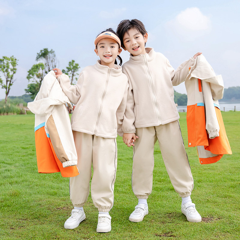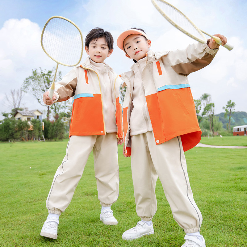 儿童运动班服 套装 幼儿园园服秋冬季 冲锋衣三件套小学生校服春秋款