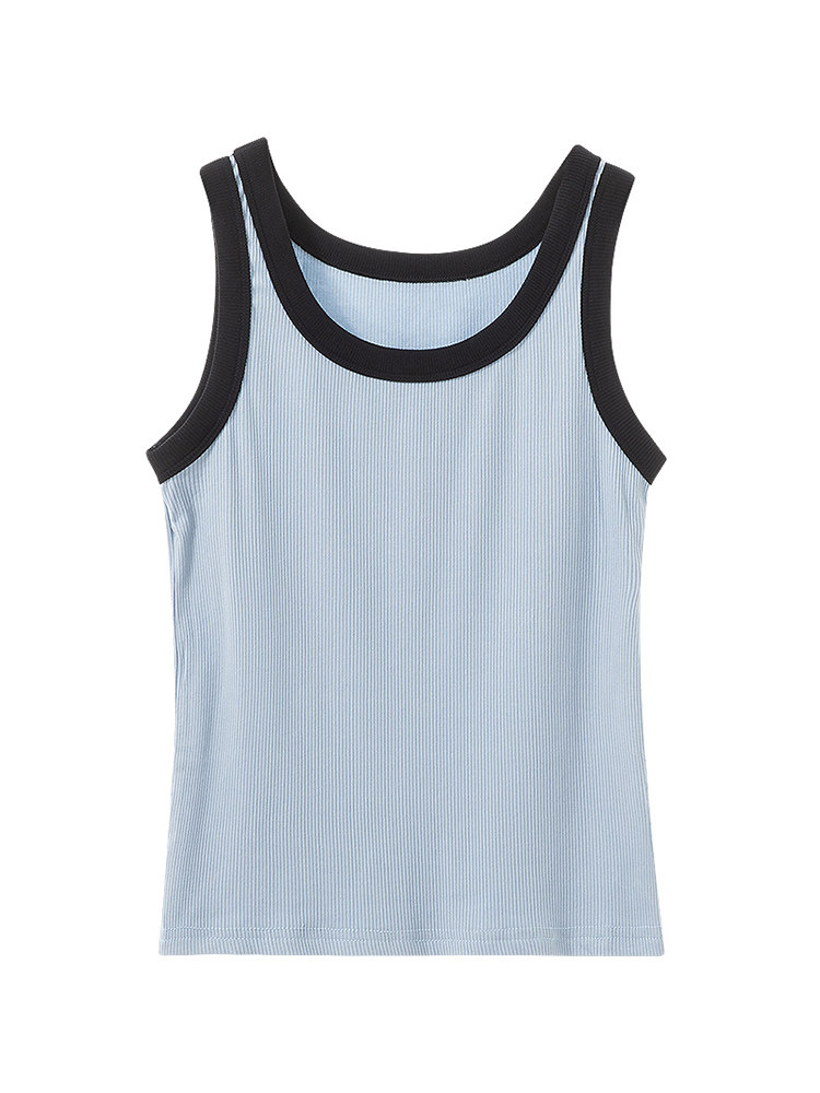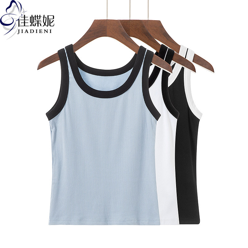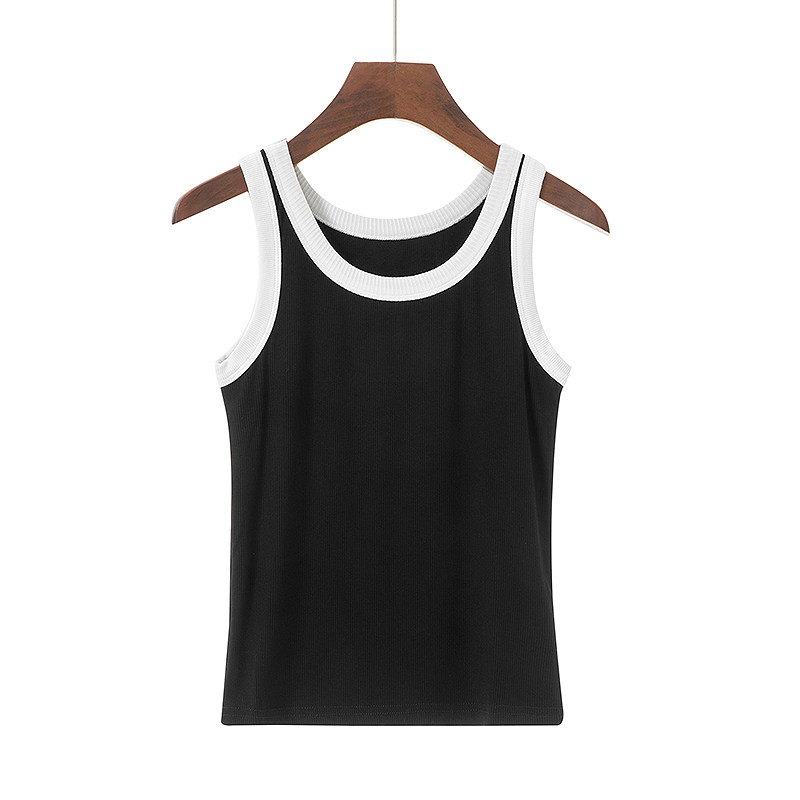 新款 纯欲显瘦纯色撞色圆领背心上衣内搭女装 韩版 短款 纯棉修身 夏季