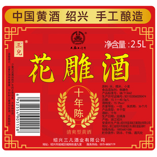 做菜料酒 自饮加饭老酒坛装 黄酒绍兴产 十年陈糯米花雕酒2.5L桶装