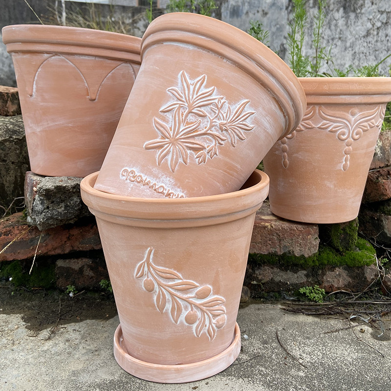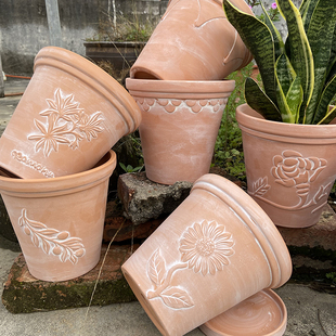 特价 泥瓦复古盆 花盆透气陶瓷红陶粗陶吸水陶土花盆桂花特大号老式