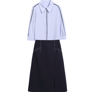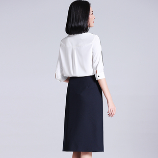 衬衫 法式 职业套装 新款 气质休闲工作服套裙 女半身裙2025夏季 五分袖