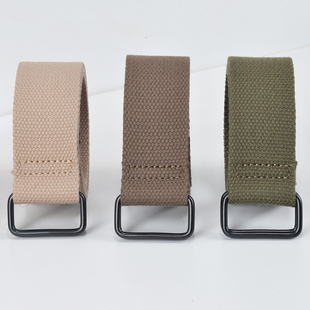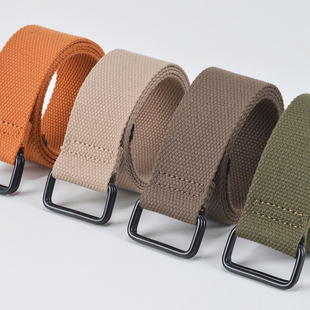 带 饰双扣编织裤 无孔免打孔男女帆布腰带双环扣学生军训皮带男士 装