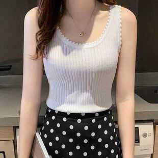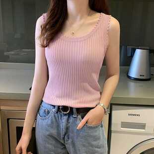 修身 薄款 韩版 吊带背心女内搭打底衫 上衣外穿 冰丝针织衫 短款 女夏季
