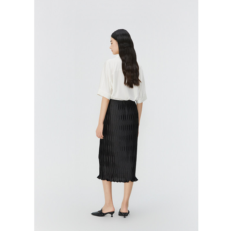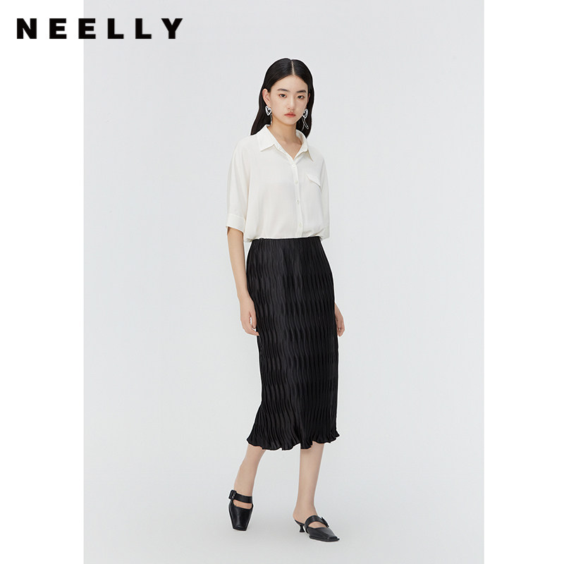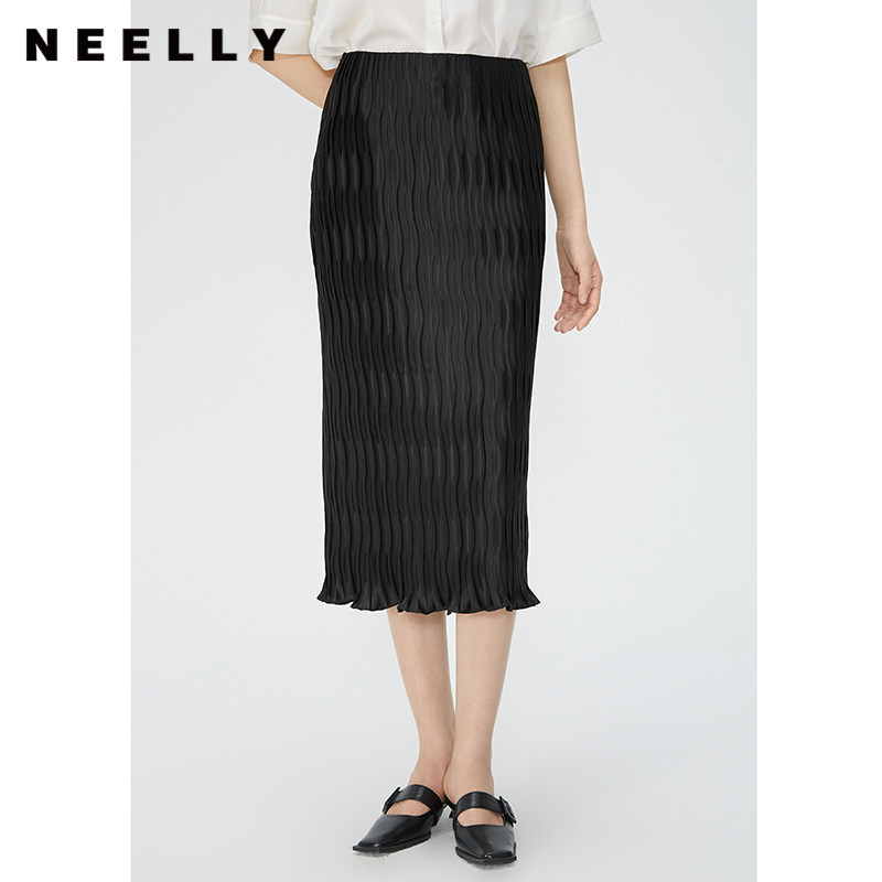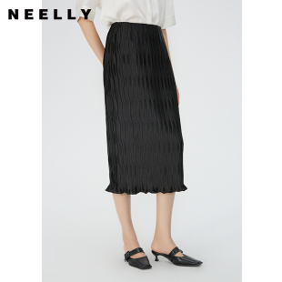 黑色肌理感包臀裙 木耳边半身裙女夏季 NEELLY纳俪商场同款 高腰法式