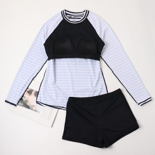 保守温泉泳装 游泳衣女2025新款 高级感分体三件套微胖女孩遮肚大码
