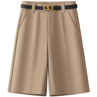 通勤卡其色阔腿西装 宽松休闲直筒五分裤 裤 女春夏2026新款 中裤 爆款
