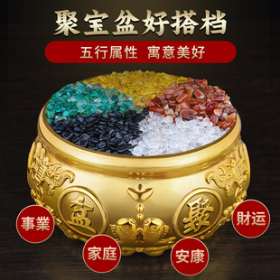天然水晶碎石五彩石原石黄水晶白绿红聚宝盆五色石五行玛瑙粒摆件