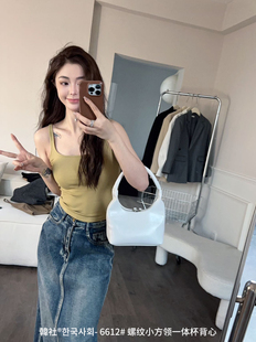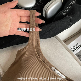 打底衫 纯色百搭外穿无袖 新款 白色罗纹棉直筒吊带背心女内搭春夏季