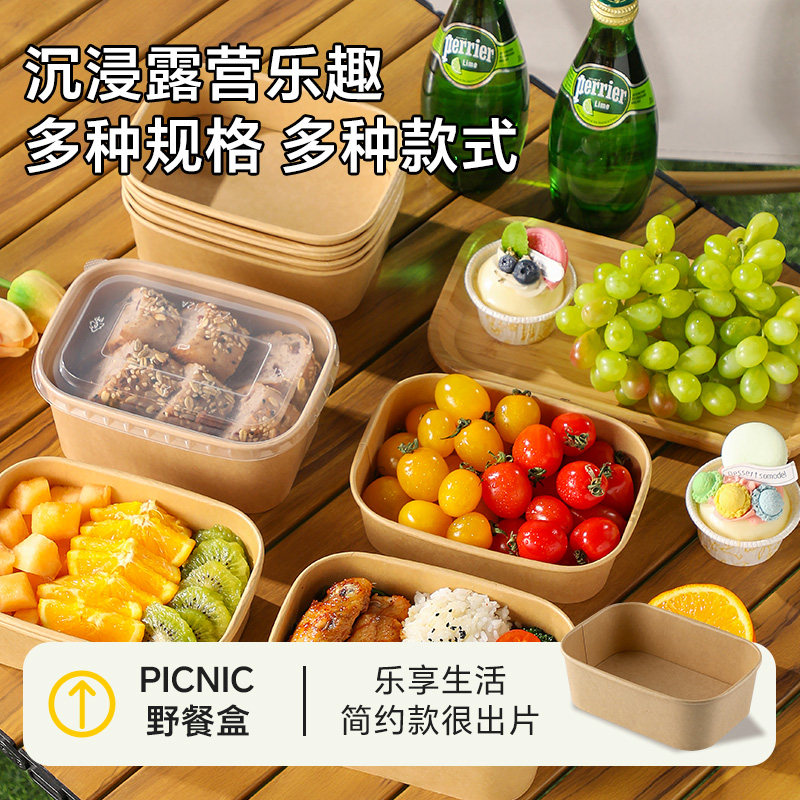 户外露营必备用品野餐盒子一次性餐具套野营春游便当盒牛皮纸饭盒