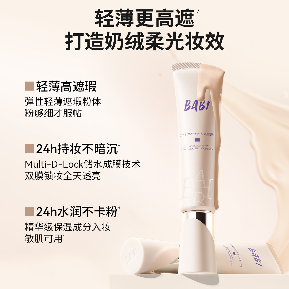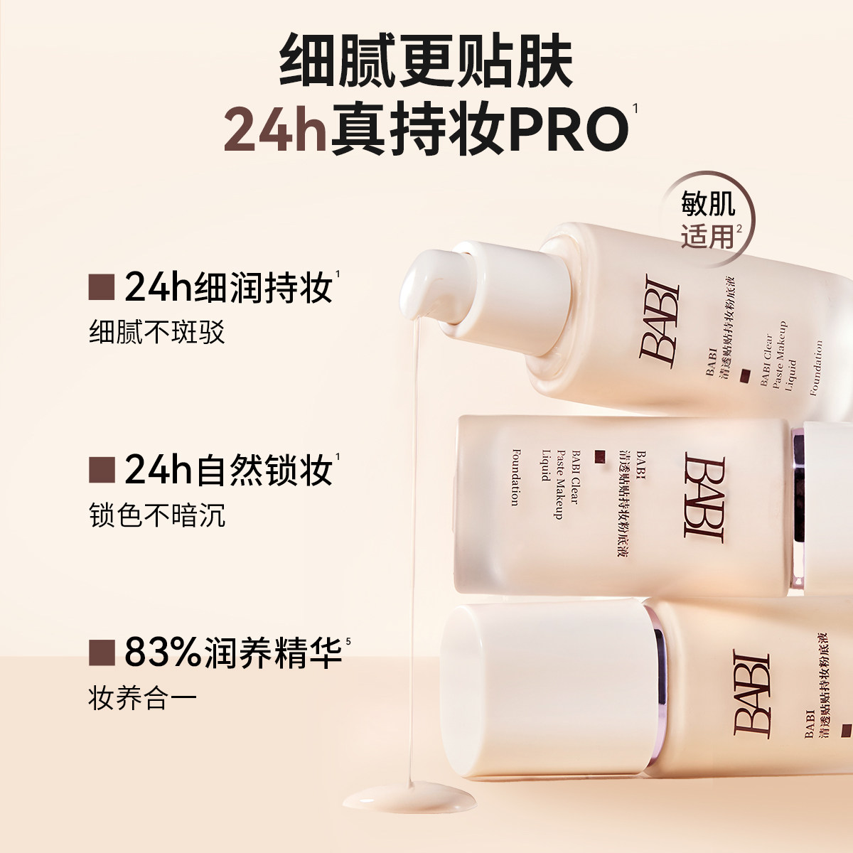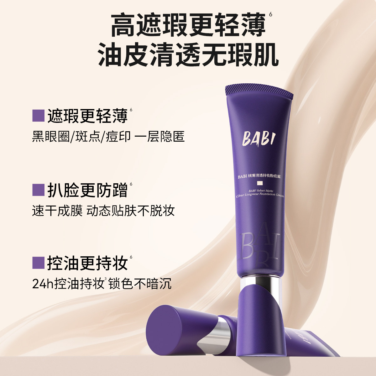 BABI持妆粉底液贴贴清透粉底霜干油皮轻薄持久遮瑕控油不脱妆