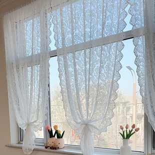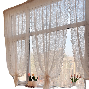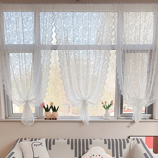 纱帘飘窗内开窗钉珠门帘2025新款 免打孔蕾丝阳台窗帘卫生间隔断帘