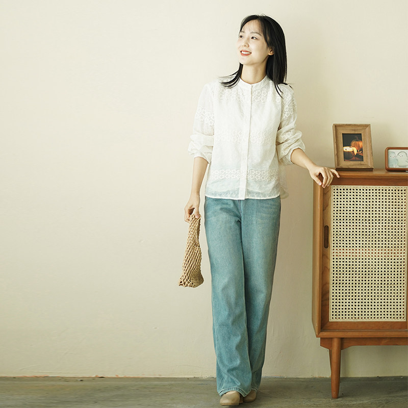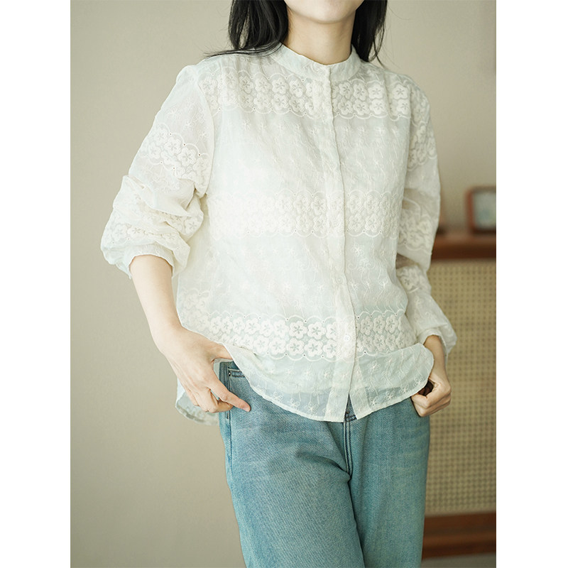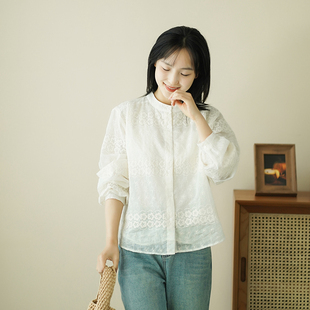 女休闲宽松灯笼袖 高级感重工蕾丝衬衫 上衣外套 新中式 艾绘馆秋冬季