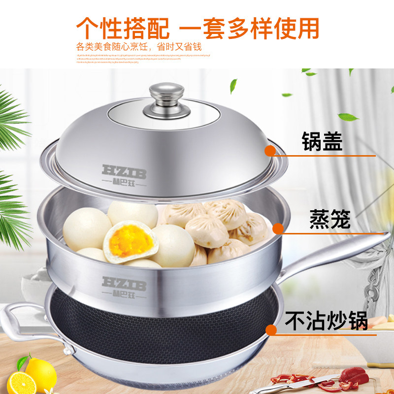 HZIB 赫巴兹304加厚不锈钢蒸格蒸笼蒸锅蒸盘蒸架蒸屉炒锅可叠加