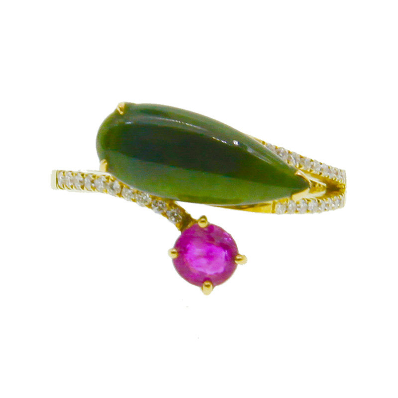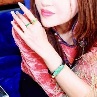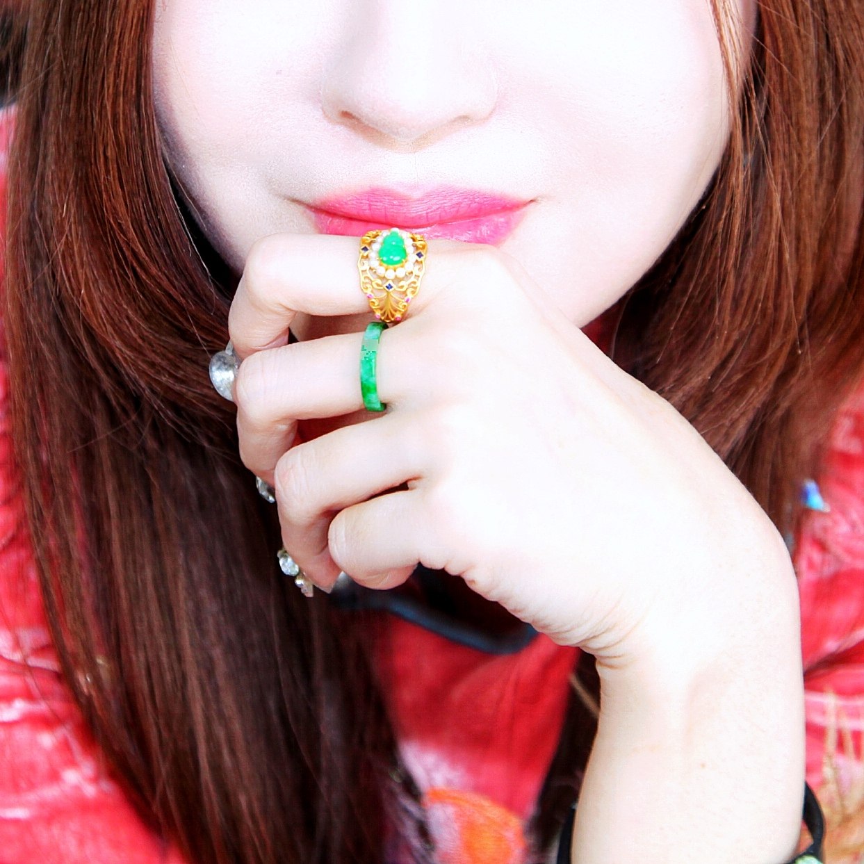 承李李原创设计 珠宝玉石中国风戒指 黄金镶嵌珍珠冰糯种翡翠葫芦