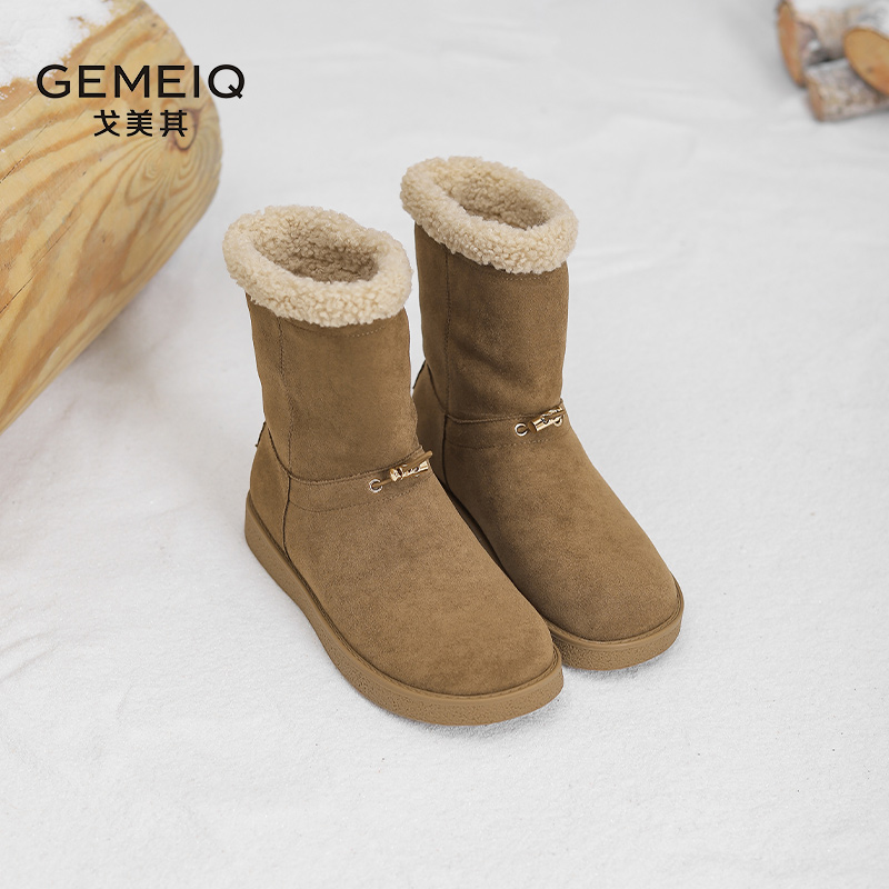 皮毛一体保暖东北大棉鞋 冬季 2025新款 戈美其中筒羊羔绒雪地靴女款