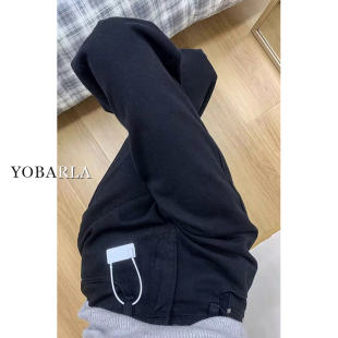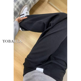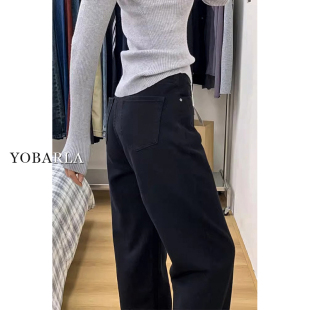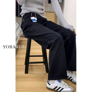 胖mm高腰宽松显瘦梨形身材阔腿裤 黑色直筒牛仔裤 大码 新款 子 女春季