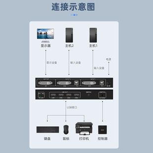 主机监控电脑分屏共用USB键盘鼠标U盘打印显示器2切1切屏器 4K台式 皮乐仕 高清DVI切换器二进一出KVM共享器