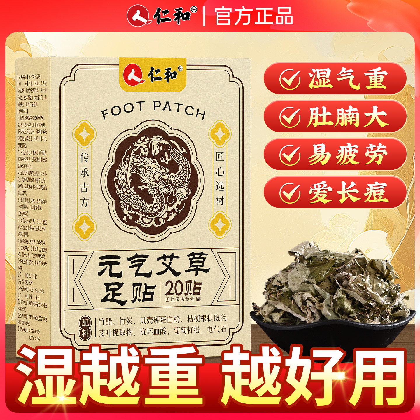 仁和元 官方旗舰店湿气湿ZY 气茯苓八珍足贴祛除艾草热敷寒正品