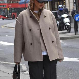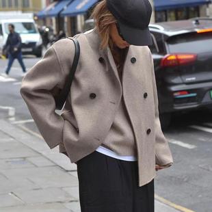 女装 woolen 宽松双排扣毛呢外套 breasted jacket Double 欧美新款