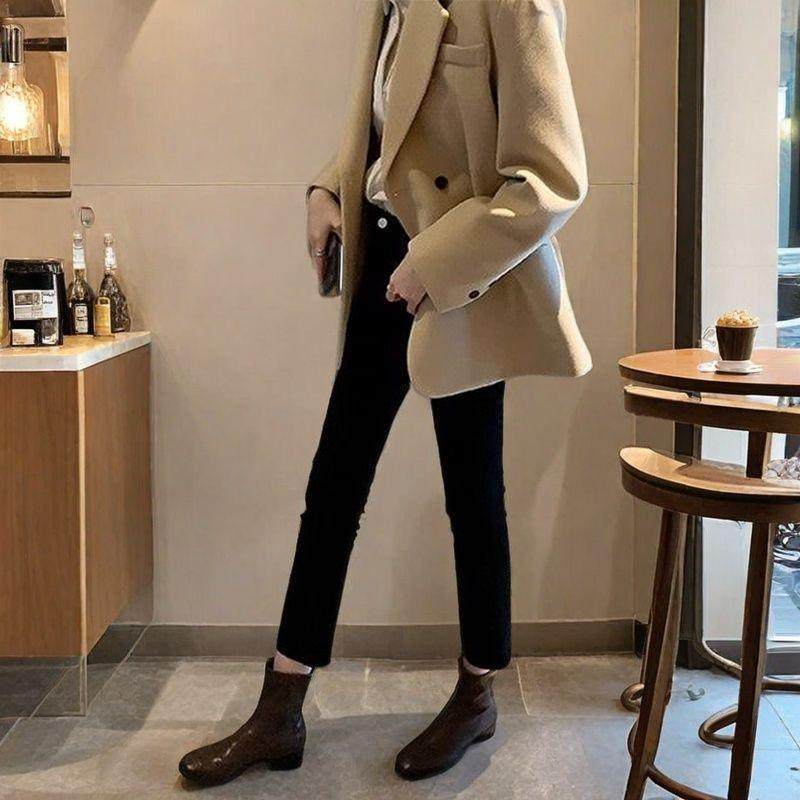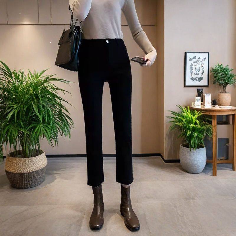 高腰显瘦百搭烟管裤 女2025秋季 直筒牛仔裤 八九分矮小个子黑色窄版