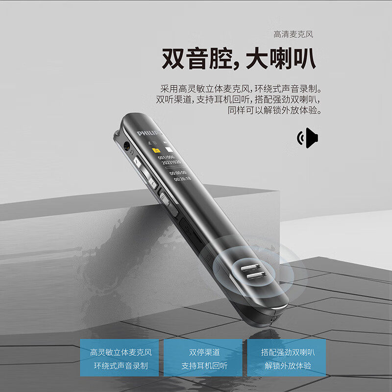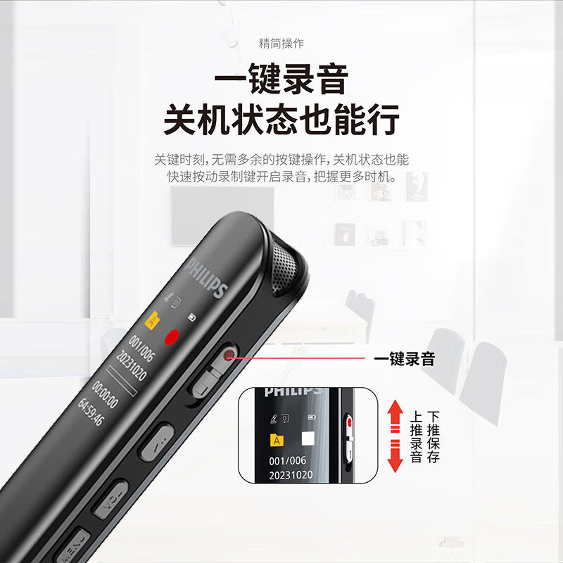 飞利浦录音笔VTR5200Pro可以转文字学生上课用专业随身降噪神器