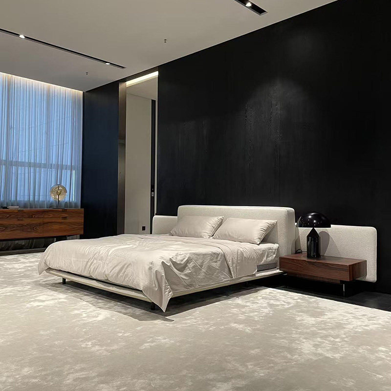 PAULJOHN豆腐块布艺床侘寂风现代轻奢高端榻榻米棉麻双人主卧婚床