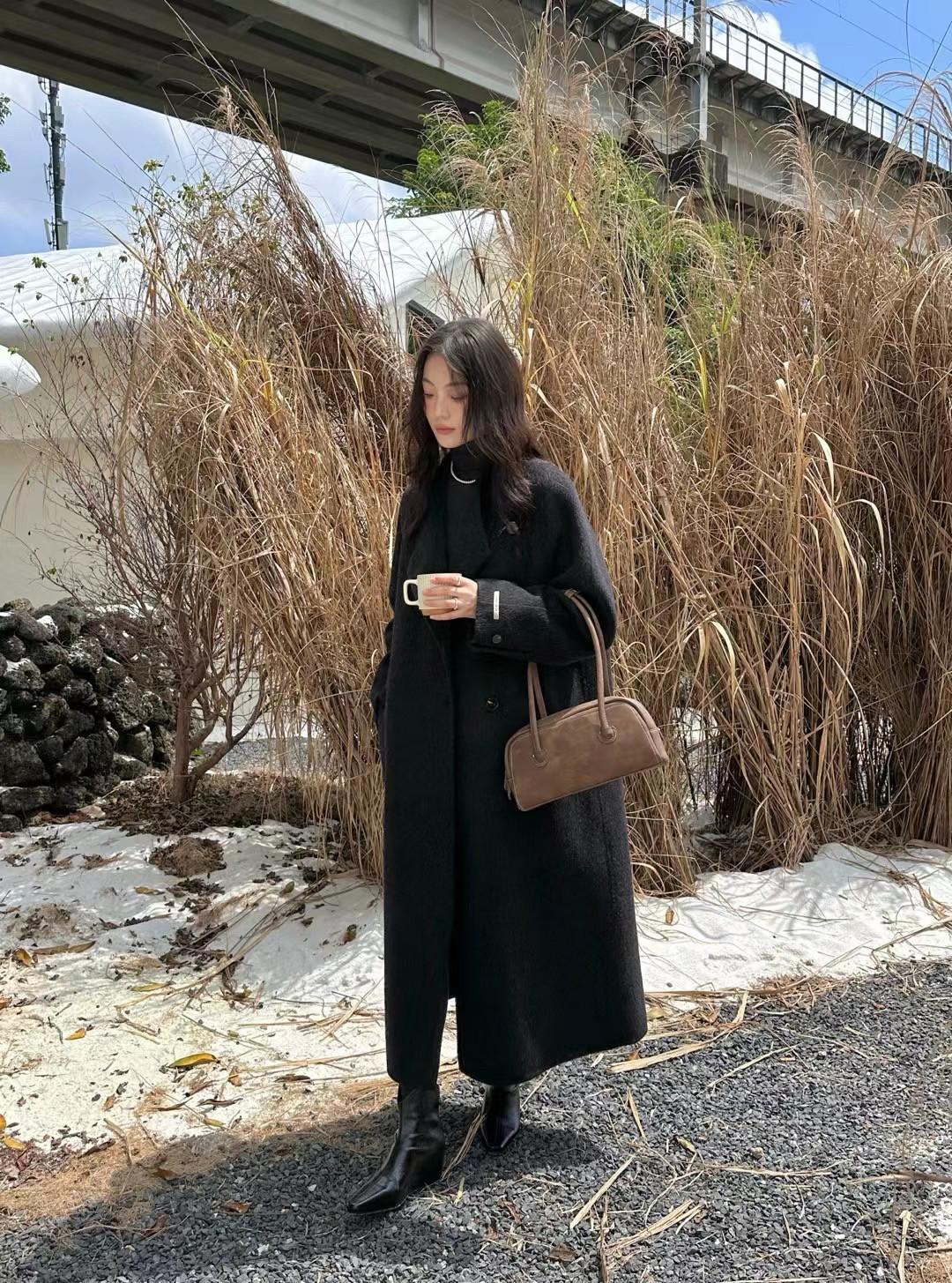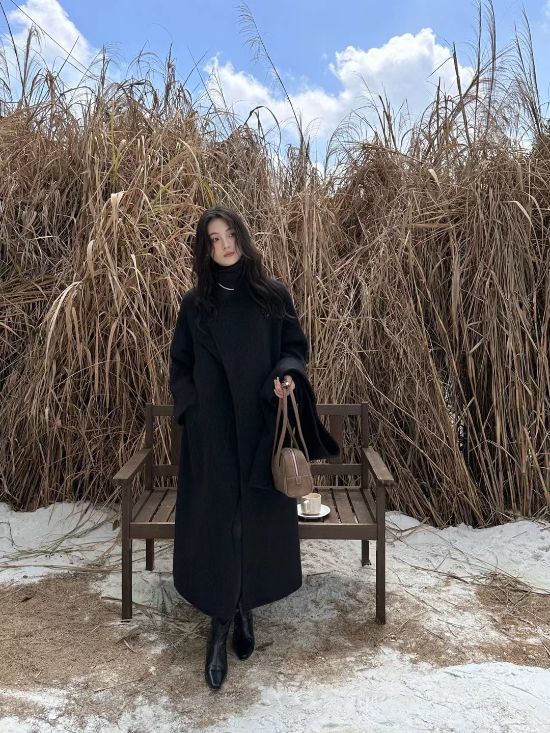 2025秋冬新款 双面羊毛大衣秋冬高级感小个子显瘦气质围巾百搭外套