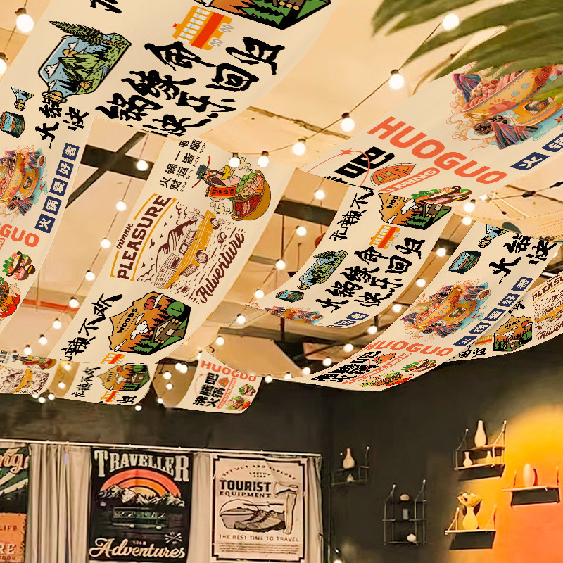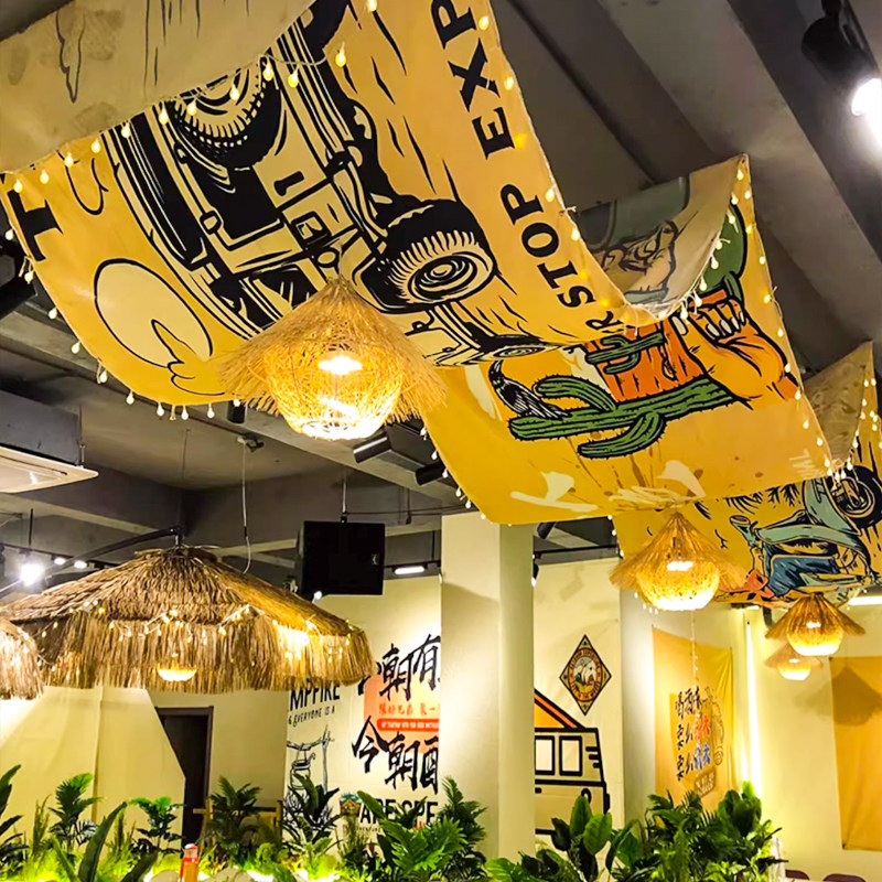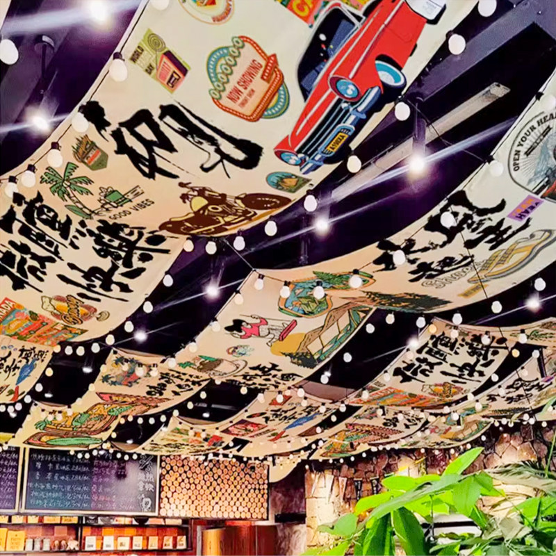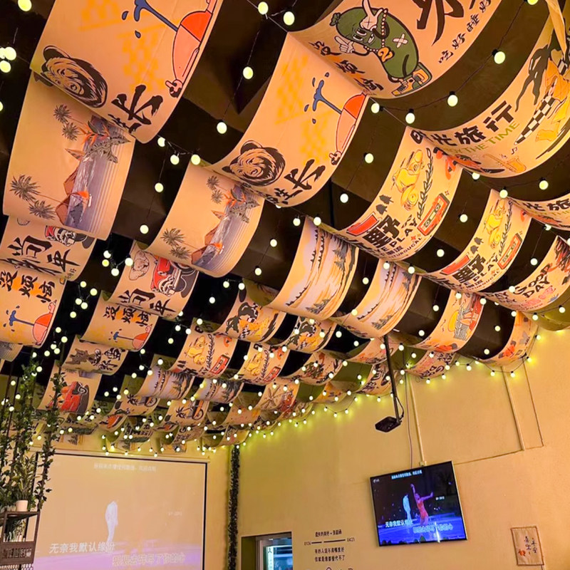 室内网红天幕露营风酒馆吧烧烤火锅装 饰氛围吊顶挂布天花板长条布