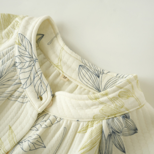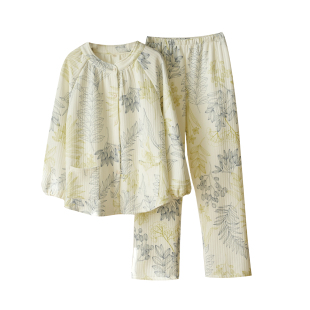 秋冬款 长裤 睡衣起居服长袖 女士纯棉复古印花空气层立领家居套装