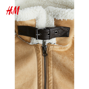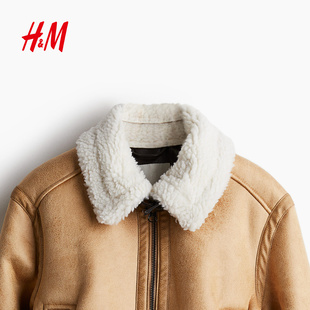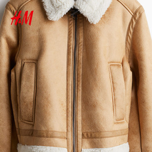 HM女装 泰迪绒衬里气质加绒加厚保暖飞行员夹克1233164 短外套冬季
