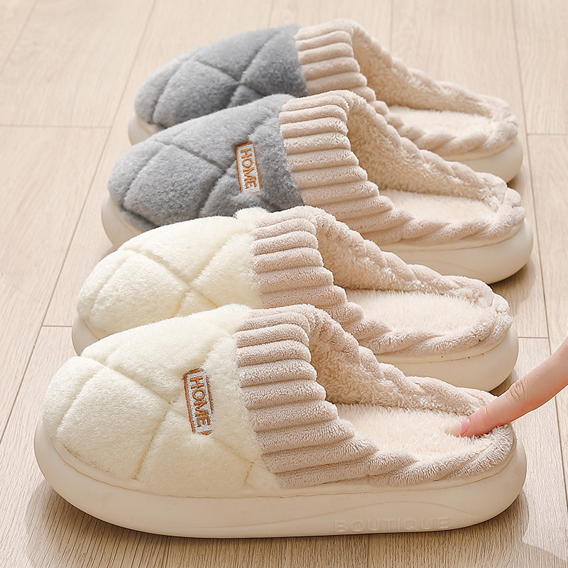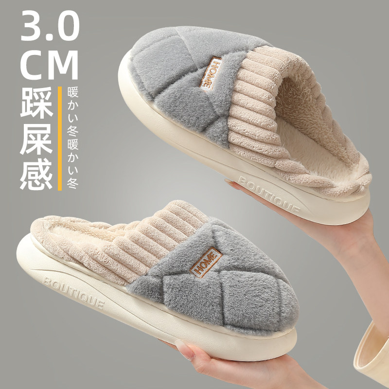 室内居家厚底保暖毛绒棉鞋 踩屎感棉拖鞋 包跟外穿25新款 冬季 男 女款