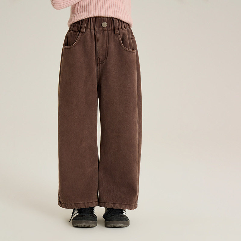女童裤 儿童纯色休闲裤 子宝宝韩版 加厚加绒长裤 冬装 保暖直筒裤 新款