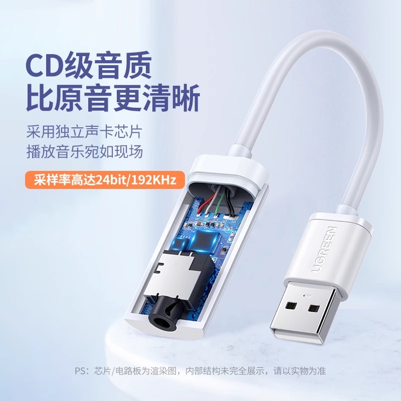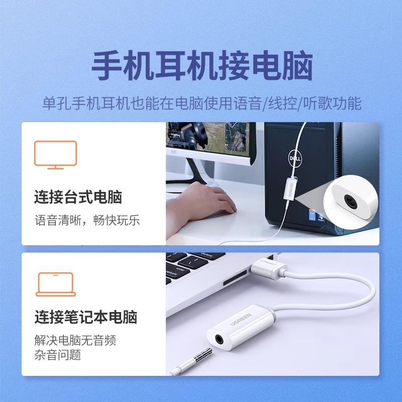 绿联usb转3.5mm接口连接台式 电脑笔记本圆孔插耳机孔麦克风耳麦插孔转换器转接头音频线二合一35毫米外置声卡