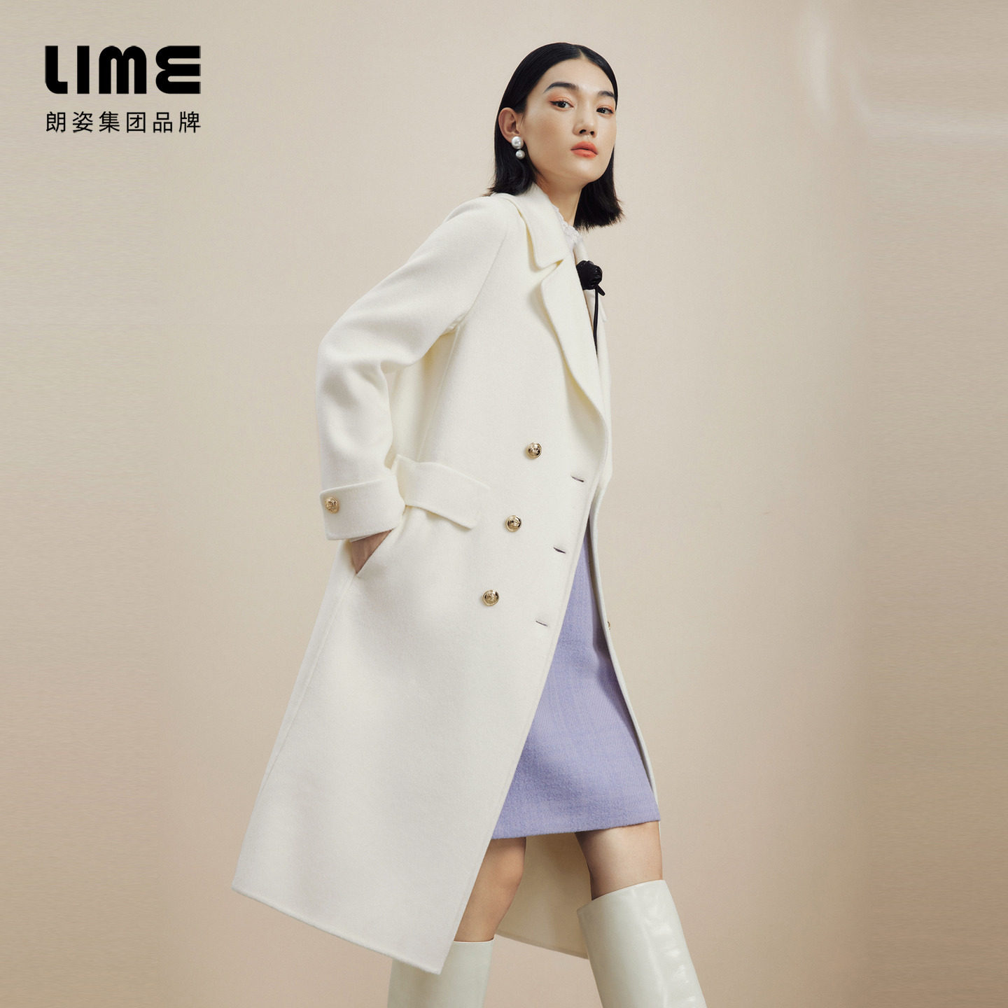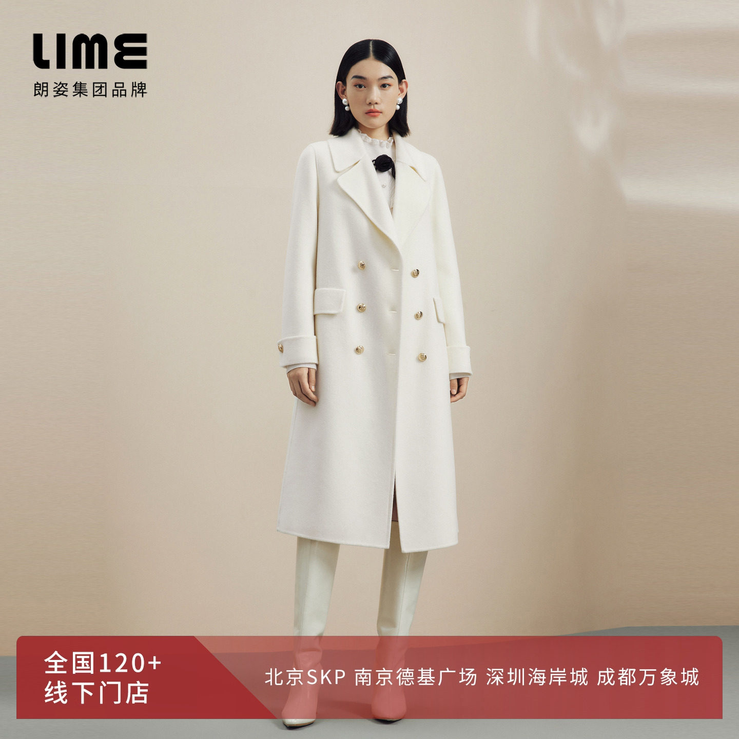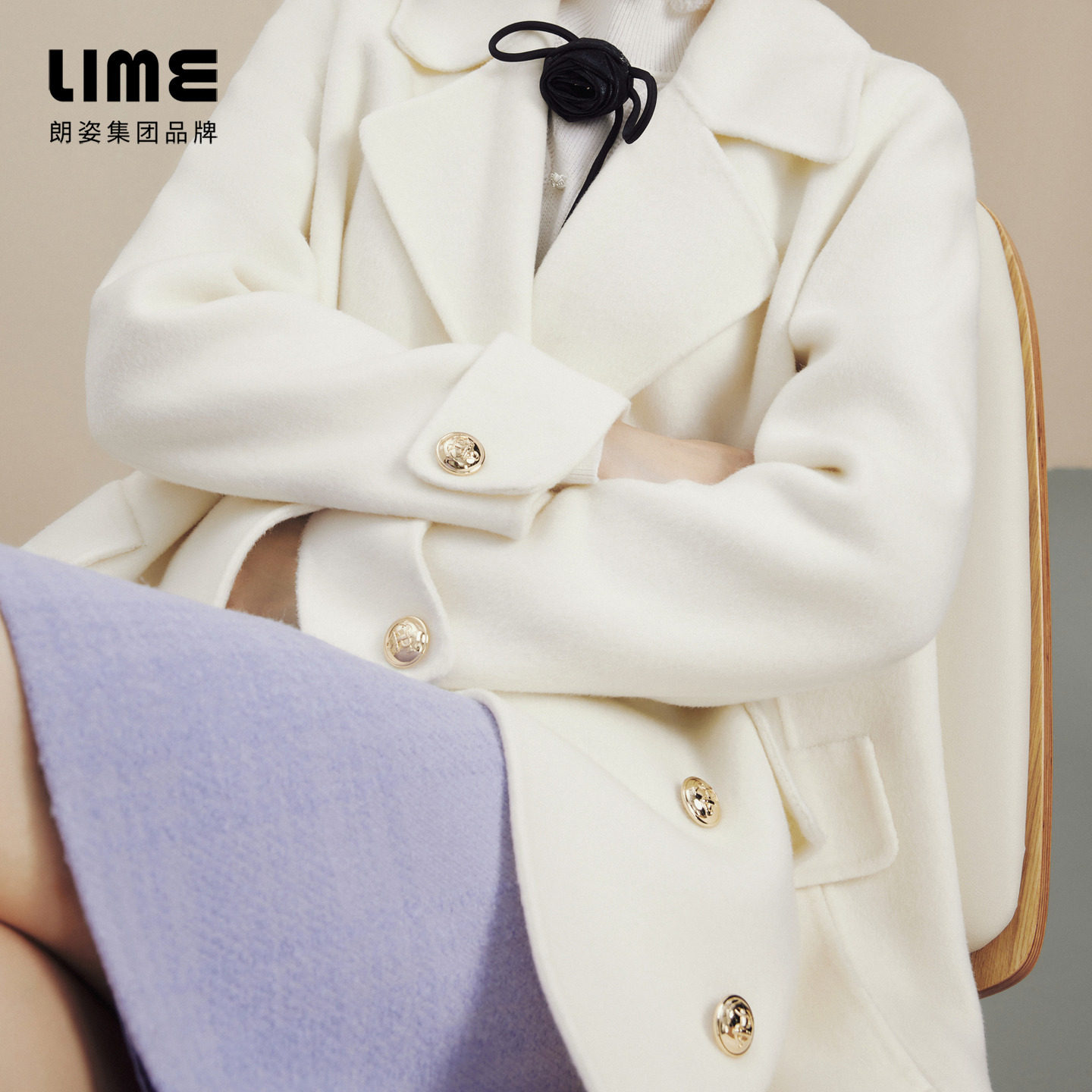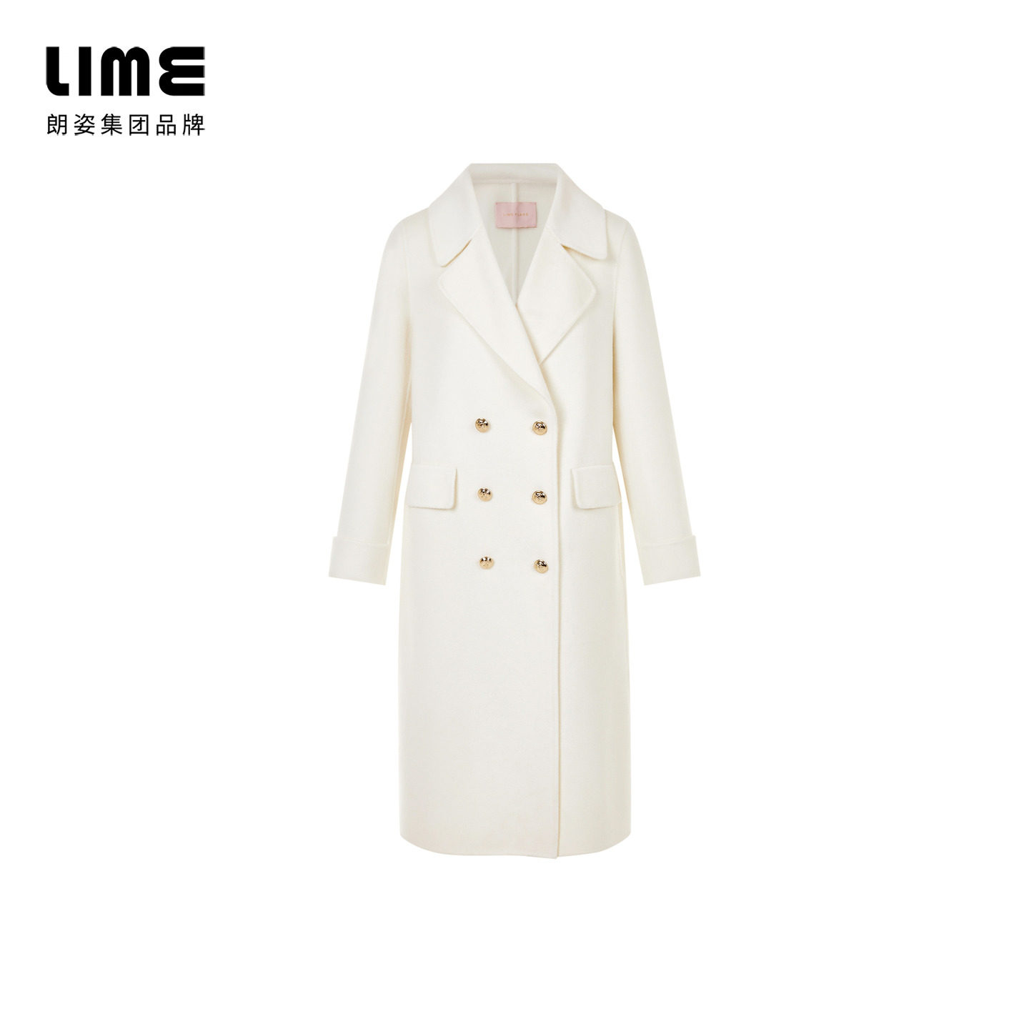 朗姿 H型简约外套 LIME莱茵羊毛羊绒混纺双面呢长大衣白色秋冬新款