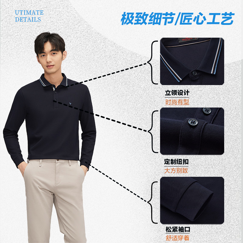 长袖 商务宽松翻领中年爸爸父亲装 polo衫 新品 男 T恤26春季 柒牌男士