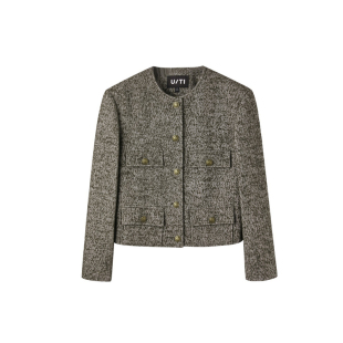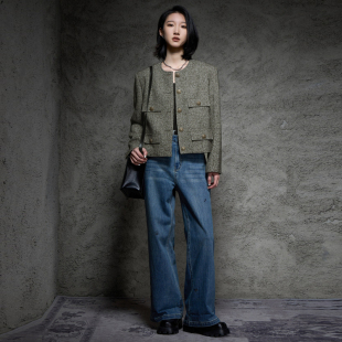 新款 秋季 TI军绿色复古粗花呢外套女百搭小香风休闲上衣尤缇时尚