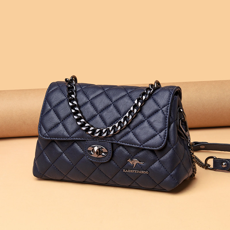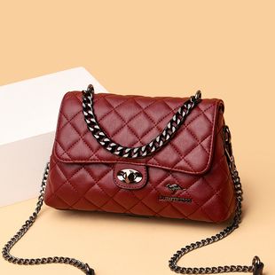 菱格链条小方包单肩包 斜挎包包女士2025新款 正品 袋鼠真皮女包时尚