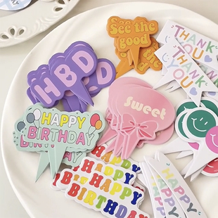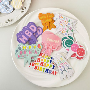 韩式 饰插牌插件 ins风可爱格纹爱心插卡玫粉HBD生日快乐蛋糕甜品装
