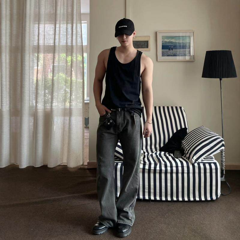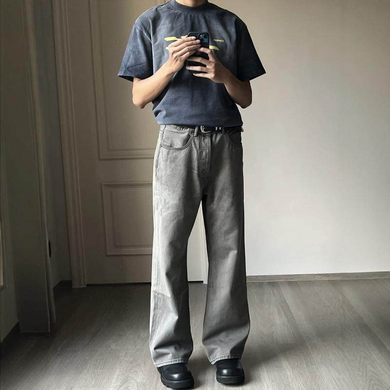 子男款 美式 微喇蓝牛裤 男cleanfit高街直筒修身 复古蓝色水洗牛仔裤
