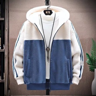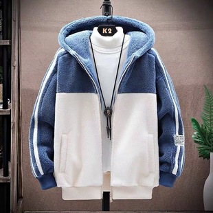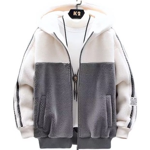 潮牌颗粒绒褂子衣服 潮流休闲连帽夹克男冬季 羊羔绒外套男士 秋冬款