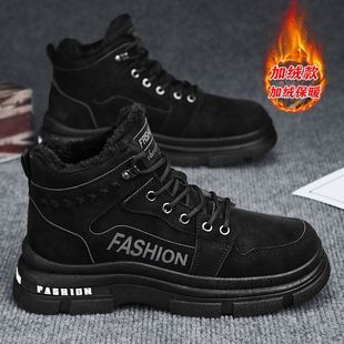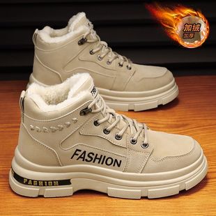 冬季 加绒加厚防滑马丁靴厚底增高休闲百搭短靴 绵羊毛雪地靴情侣款